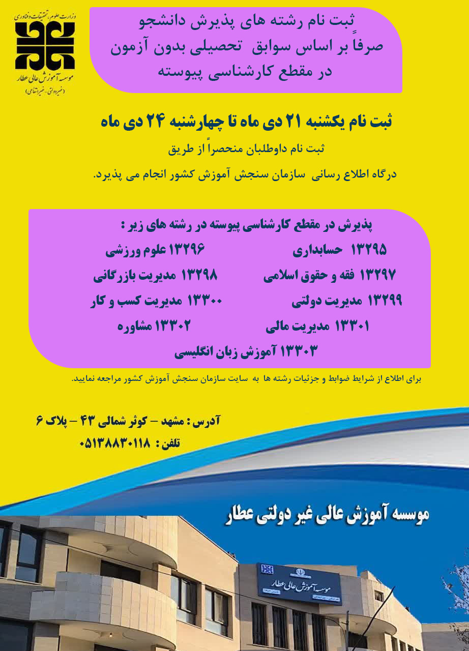 موسسه آموزش عالی غیر دولتی غیر انتفاعی عطار